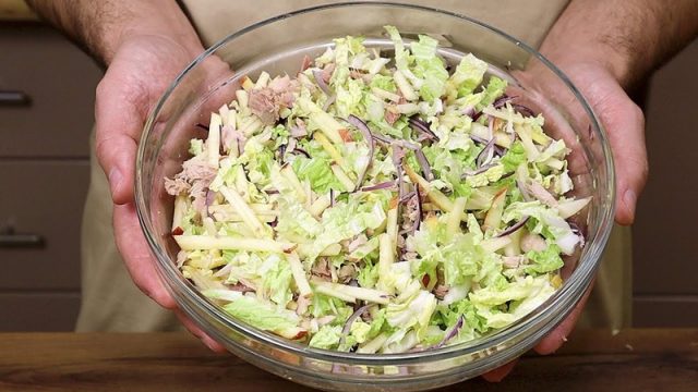 Polecam zrobić tę pyszną i prostą sałatkę. Potrzebujemy: :1/2 kapusty pekińskiej. 1 cebula. 1 jabłko. 200 gramów gotowanego filetu… Dowiedz się więcej »Ta pyszna sałatka nigdy mi się nie znudzi! Lekka sałatka z tuńczykiem